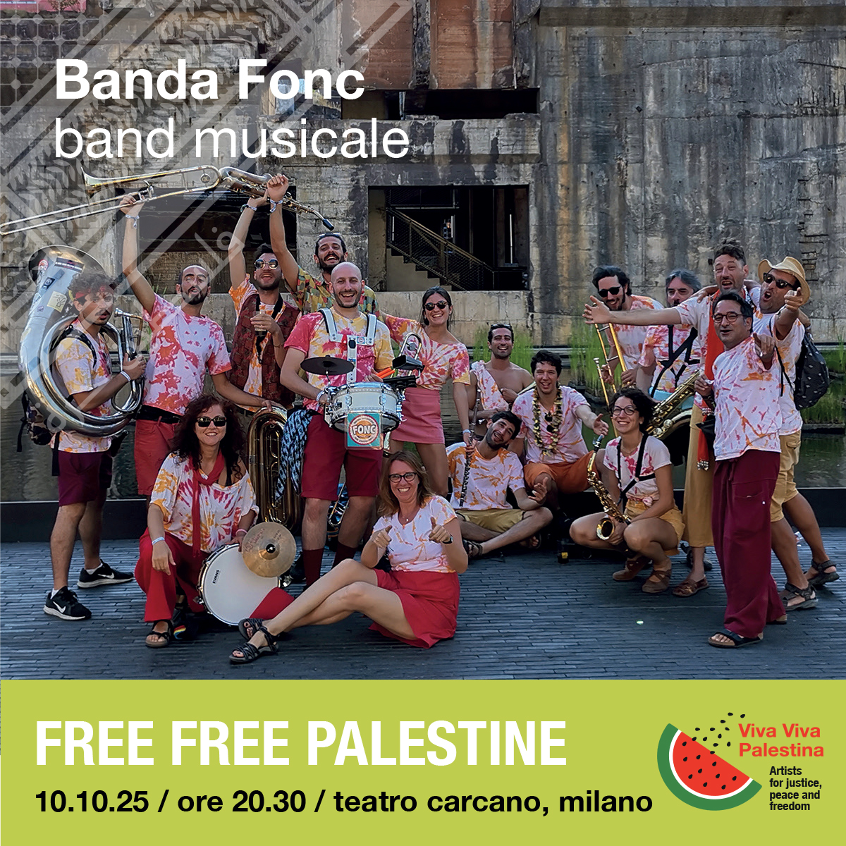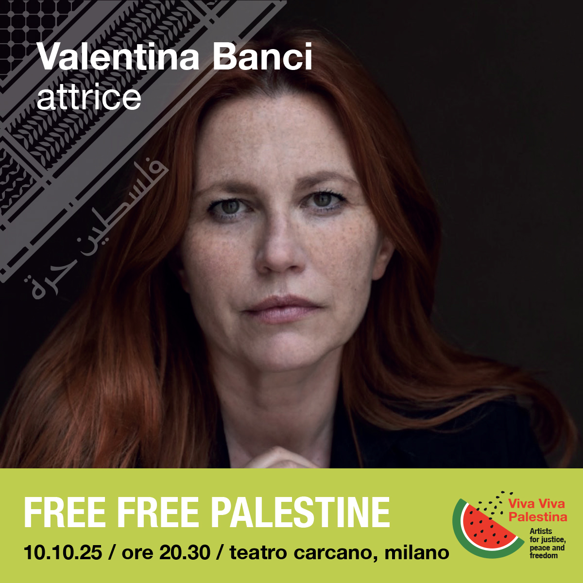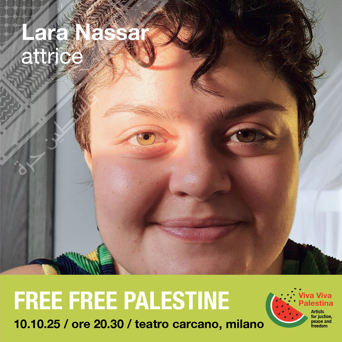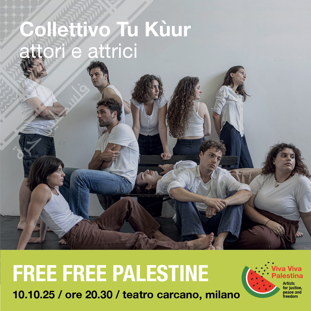 Ringraziamo di cuore il Teatro Carcano e tutti gli artisti per il loro supporto a questo evento. Più di trenta artisti, italiani e internazionali, si esibiranno per sostenere il popolo palestinese, per diffondere e mantenere viva la sua ricca e preziosa cultura attraverso la musica, il teatro e la poesia.